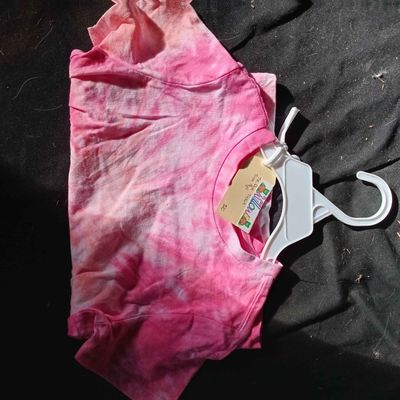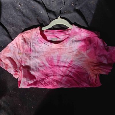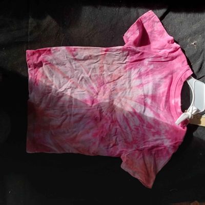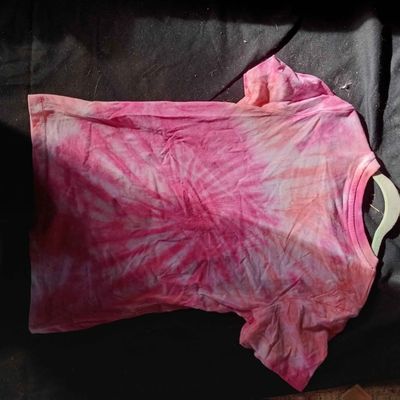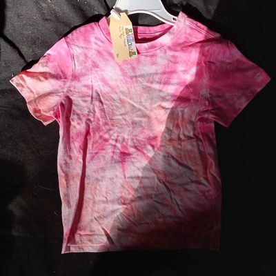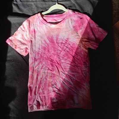 Hand tie-dyed pink T-shirts in a lovely bold light and dark pink pattern