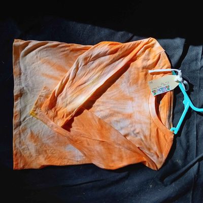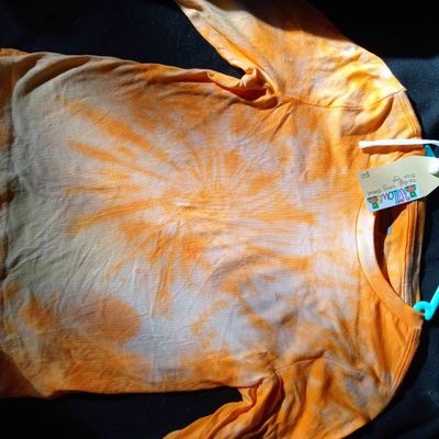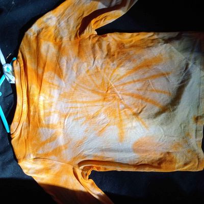 Hand tie-dye in a bright orange dye creating a strong bold pattern